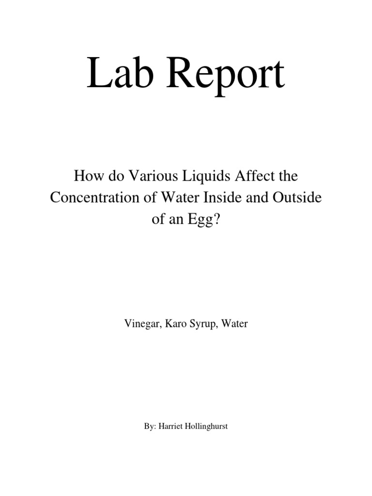 Egg osmosis lab report yen do period 2 introduction: In this lab your group will be given a raw egg. Fun with an egg and osmosis period: Objectives upon completion of this lab activity, you should be able to: We will immerse an egg in acetic acid for a day. This lab will use a raw egg as a model for a living cell. Under the shell, the egg has a membrane that acts much like the cell membrane. This is also due to osmosis, but in the opposite direction. There should be two sides with some type of membrane in between. What happens when a cell is subjected to a solution where the water concentration is higher than that inside a cell (hypotonic solution)? Osmosis is a very important process for moving water through membranes in and out of cells. Right now, as you read this, there are millions of things happening throughout your body. Osmosis is similar, but is particular to solutions (dissolved mixtures) separated by a membrane.